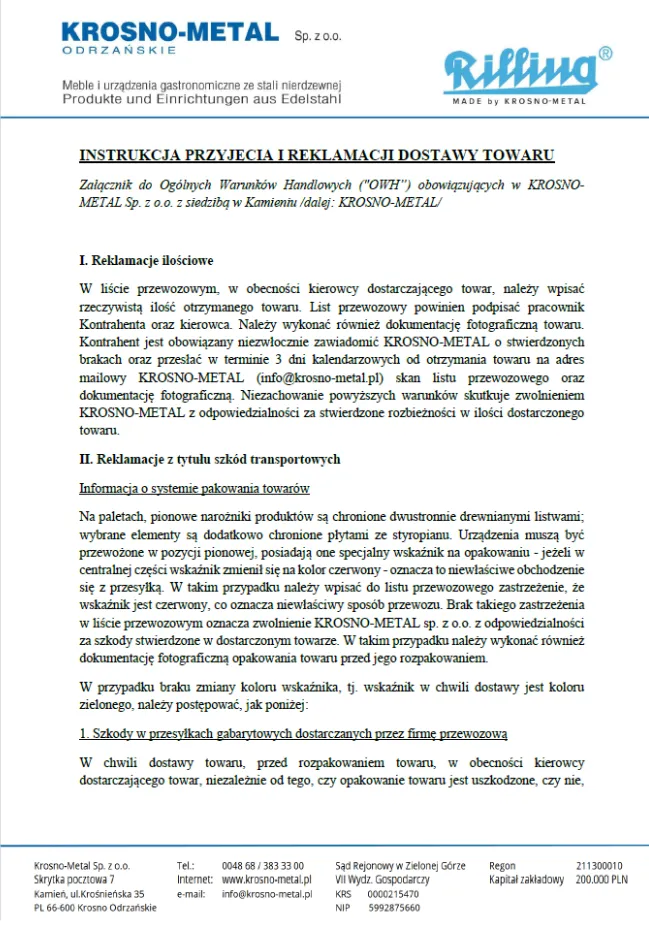 instrukcja przyjęcia i reklamacji dostawy towaru