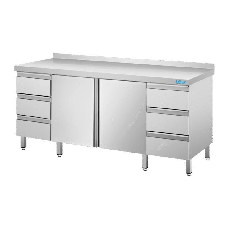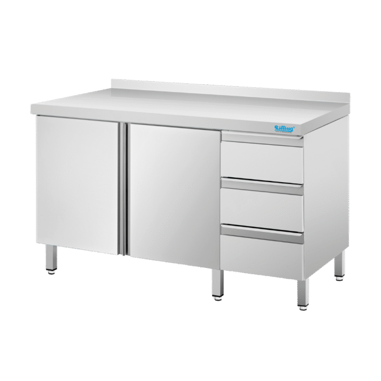 Meble ze stali nierdzewnejSzafki do pracy z drzwiami skrzydłowymiSzafka do pracy z drzwiami skrzydłowymi i blokiem szuflad