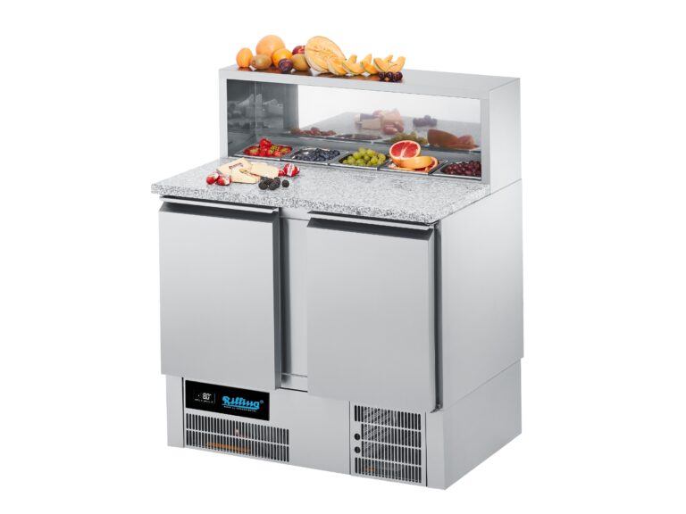 Stoły do pizzyStoły sałatkowe i do pizzyStół chłodniczy 2 drzwiowy do pizzy z blatem granitowym i agregatem na dole